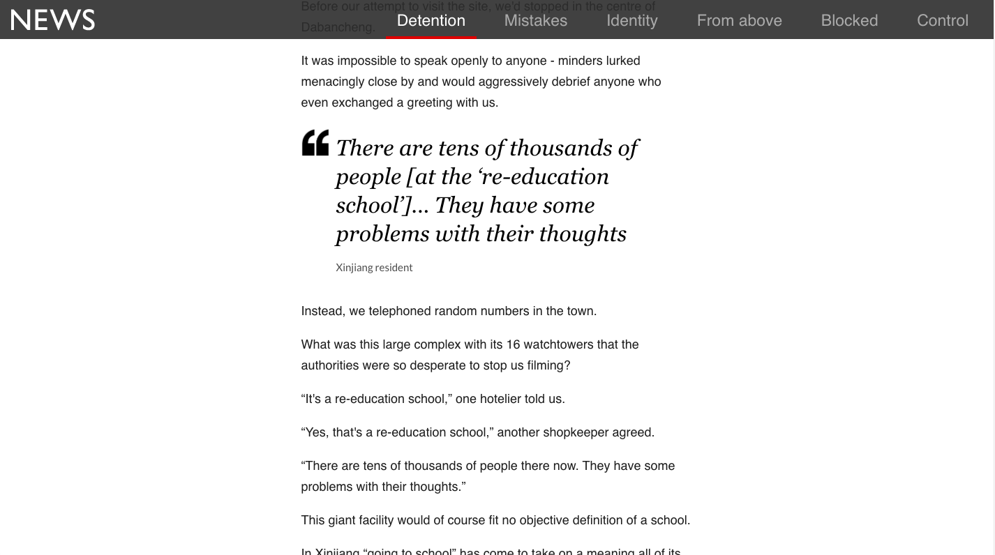The BBC compiled a large number of real photos, survey records, Google Earth images and media exposure materials, produced a special page “China’s hidden camps” for Xinjiang concentration camps, and summarized the CCP’s Xinjiang strategy as: