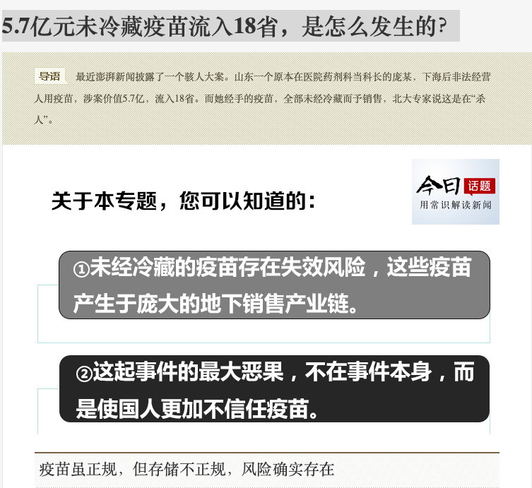Sohu original text: [A hundred million yuan of vaccines flowed into 18 provinces without refrigeration Expert: This is killing] (http://news.sohu.com/20160318/n440923201.shtml)