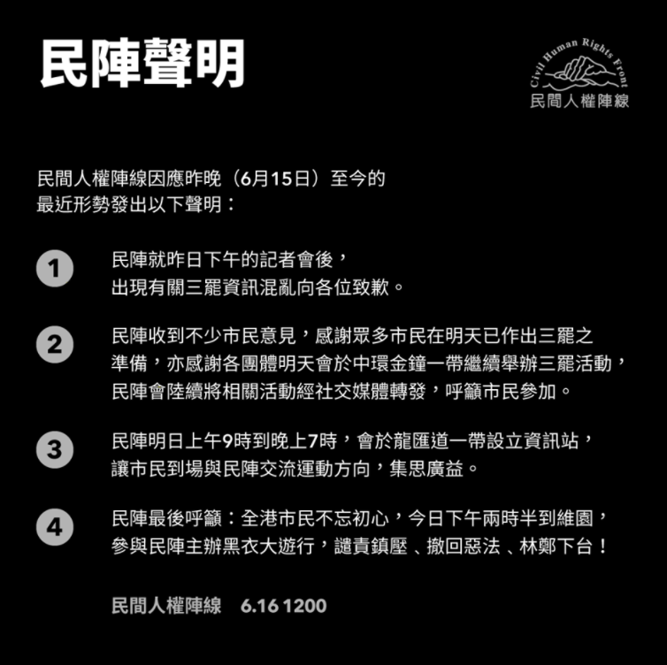 Carrie Lam said at a press conference on June 15 that the police violently suppressed the “justice of heaven and earth”. Although the Hong Kong government said that the Hong Kong government would postpone the revision of the regulations, it did not “withdraw” and aroused more anger among the people. The FDC convened 616 to continue the demonstration. Appeal