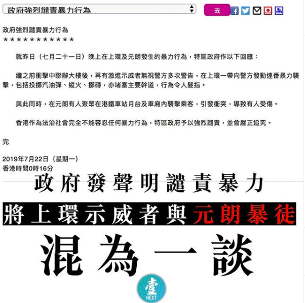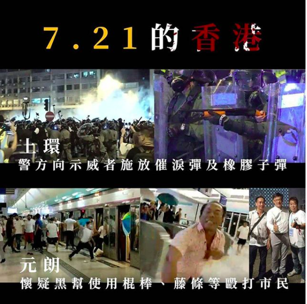 After the parade ended on July 21, serious police-civilian clashes broke out. At 11:30 in the night, a large number of suspected triad groups in white chased citizens and demonstrators with bundles, and even rushed into subway platforms and carriages. Assaulted passengers, 36 people were rushed to hospital, 4 were seriously injured, and 1 was in critical condition