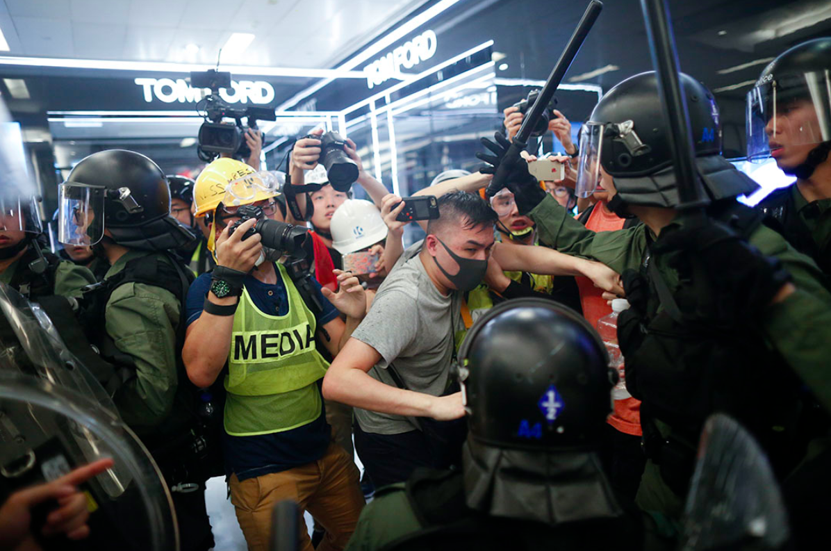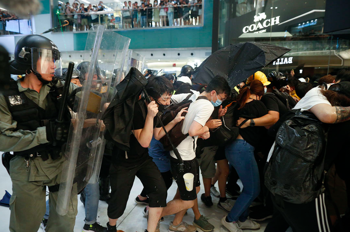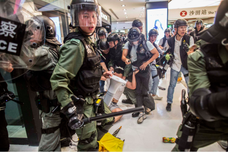 At 9pm, the police surrounded and drove the demonstrators into the New Town Plaza and blocked the station exit of the battlefield, violently violating the people in the mall, regardless of gender