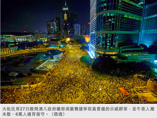 [The masses rushed into the Hong Kong Government Square // The Hong Kong police violently cleared the site and 60,000 people confronted the Occupy Central] (https://news.ltn.com.tw/news/focus/paper/817063)