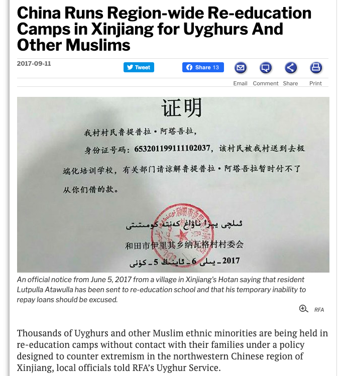Source: China Runs Region-wide Re-education Camps in Xinjiang for Uyghurs And Other Muslims