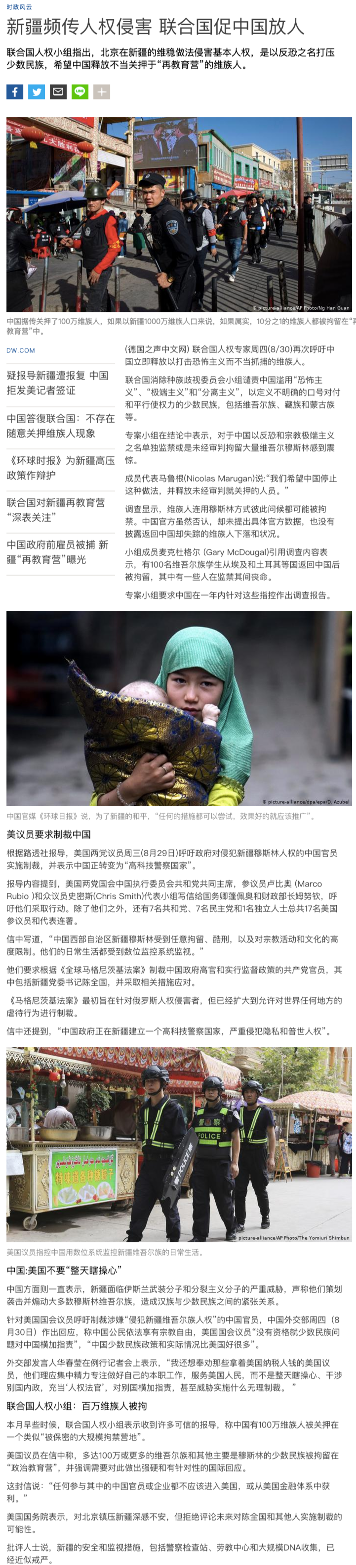 Source: [Xinjiang Frequent Human Rights Violations of the United Nations Promoting China’s Release of People] (https://www.dw.com/zh/%E6%96%B0%E7%96%86%E9%A2%91%E4%BC% A0%E4%BA%BA%E6%9D%83%E4%BE%B5%E5%AE%B3-%E8%81%94%E5%90%88%E5%9B%BD%E4%BF%83 %E4%B8%AD%E5%9B%BD%E6%94%BE%E4%BA%BA/a-45285697?&zhongwen=simp)