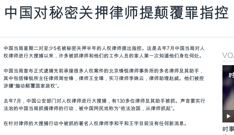 Source: [China charges subversion charges against secretly detained lawyers] (https://www.voachinese.com/a/Chinese-lawyer-20160112/3141293.html)