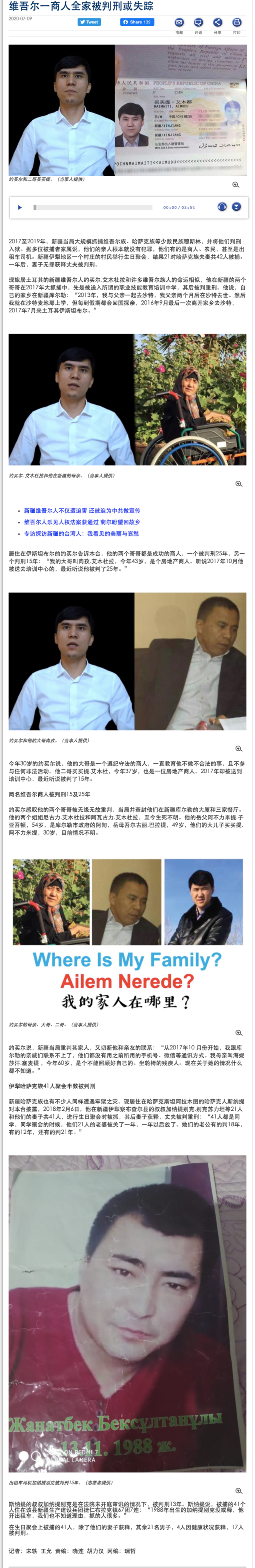 Source: [The entire family of a Uyghur businessman was sentenced or missing] (https://www.rfa.org/mandarin/yataibaodao/shaoshuminzu/sywy-07092020065836.html)