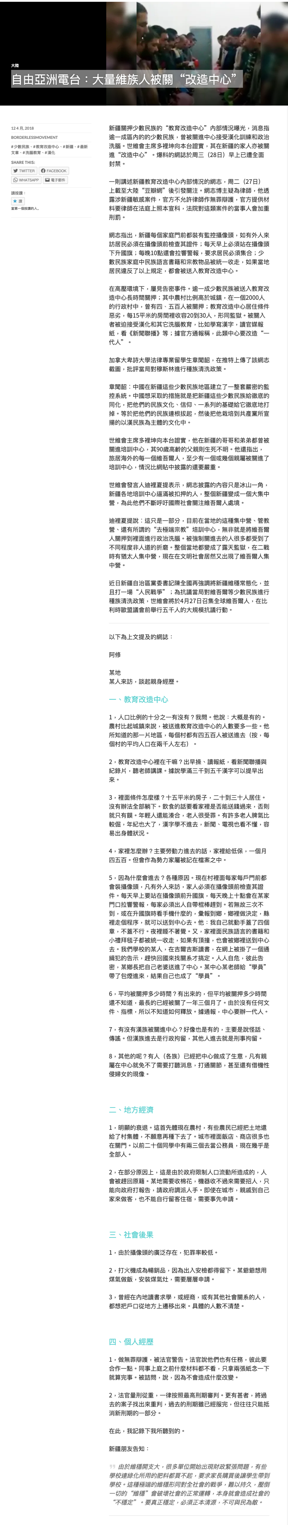 Free Asia News. Recently, the internal situation of the “Education and Reform Center” detaining ethnic minorities in Xinjiang has been exposed. The content of the report was briefly present on Douban and then disappeared.