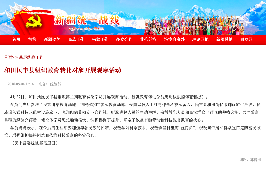 Source: [Hetian Minfeng County organizes educational transformation objects to carry out observation activities] (http://www.xjtzb.gov.cn/2016-05/04/content_521118.htm)