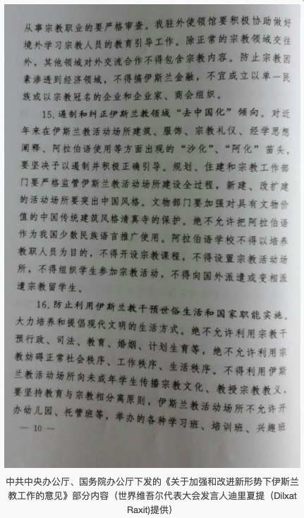 Source: [Chinese confidential documents are exposed to force the “sinicization” of Islam] (https://www.rfa.org/mandarin/yataibaodao/shehui/yl-06222018105345.html)